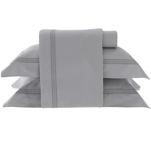 Contém: 1 lençol plano, 1 lençol com elástico e 2 fronhas