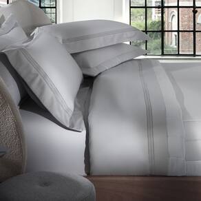 Os lençóis e fronhas da coleção Bordado da Linha K da Kacyumara são produzidos em tecido acetinado 100% algodão egípcio, com percal 300 fios.