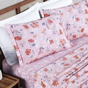 Jogo De Cama Afeto 400 Fios Casal Padrão 04 Peças 100% Poliéster - Flora - Blush