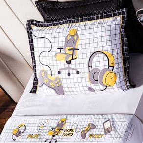 Jogo De Cama Game Streamer Branco Solteiro 03 Peças - Micropercal 180 Fios