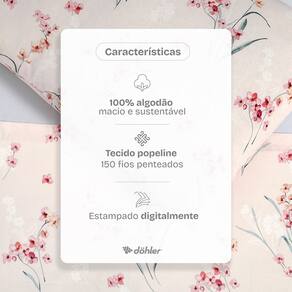 Feito em 100% algodao, este jogo oferece leveza, qualidade e uma suavidade natural ao toque, ideal para quem valoriza conforto e bem-estar no dia a dia. O algodao e resistente, permite melhor circulacao de ar e ajuda a manter a temperatura agradavel durante o sono, tornando as noites mais frescas e aconchegantes.