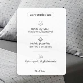 Jogo de cama Casal 100% Algodão 150 fios 4 Peças Provença - Döhler - Cinza