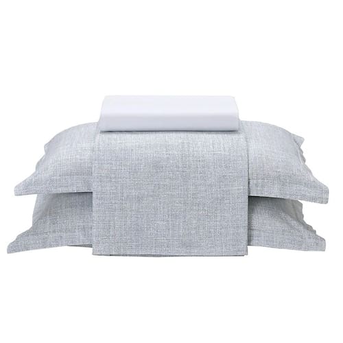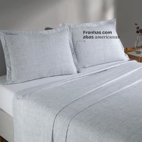 Ficha Tecnica 01 Sobre lencol: 2,20 m x 2,50 m 01 Lencol com elastico: 1,38 m x 1,88 m x 35 cm 02 Fronhas com abas: 70 cm x 50 cm Composicao: 100% algodao percal 180 fios Linha: Uni