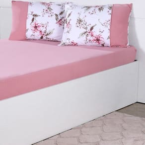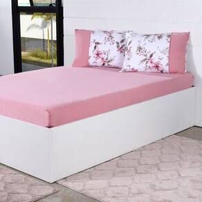 Jogo de Cama Casal 3 Pçs Malha Premium 145g/m² 100% Algodão 138x188x30cm Fiori -