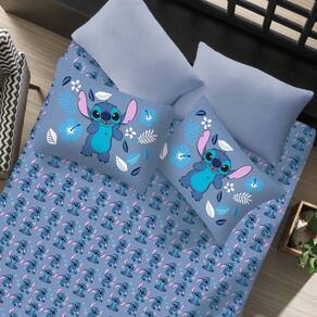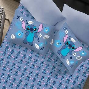 Jogo de Cama Casal 3 Pçs Stitch Disney 70% Algodão 30% Poliéster Stitch Blue -