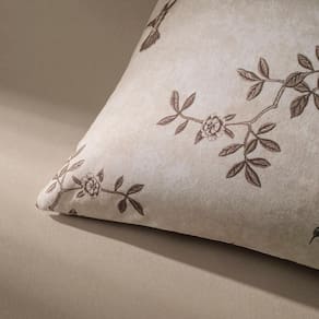 A estampa Paradis Composê traz delicadeza e elegância para o quarto com desenhos de pássaros e folhagens em tons sutis sobre o fundo bege mocha. Confeccionada com enchimento em poliéster thermobonder macio e leve, garante conforto e praticidade no dia a dia. Disponível em edredom, jogo de colcha com porta-travesseiros, jogo de cama completo com lençol superior, inferior e fronhas com viés, além da versão simples com lençol de elástico e fronhas envelope. Um toque sofisticado para transformar sua cama em um refúgio de aconchego.