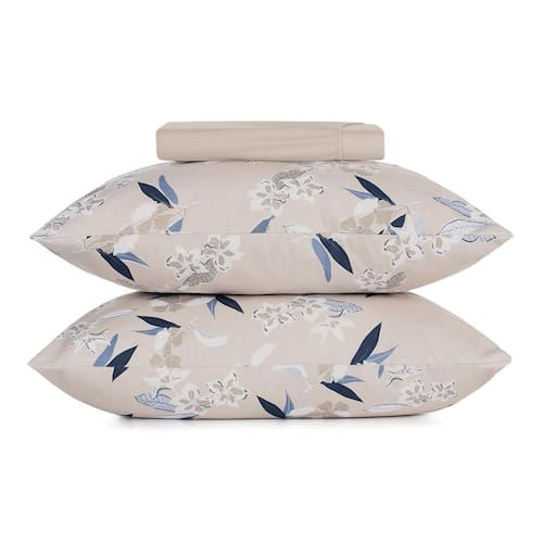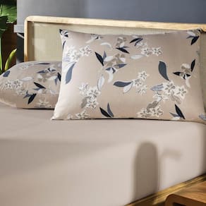 A estampa Kyoto combina a suavidade do bege mocha com flores e folhagens em tons de azul e cinza, criando um visual sofisticado e acolhedor para o quarto. Confeccionada em puro algodão de alta maciez, a coleção oferece edredom com enchimento em poliéster thermobonder leve, colchas com viés e porta-travesseiros no tamanho padrão com abas e acabamento em matelassado quadriculado, que mantém o enchimento bem distribuído e confere um relevo elegante. O jogo de cama completo traz lençol superior com dobra feita, lençol inferior com elástico que se adapta a colchões queen e king de até quarenta centímetros de altura e fronhas estilo envelope com viés e acabamento em rolotê. Já o jogo de cama simples é ideal para o dia a dia, com lençol de elástico e fronhas envelope sem abas. Uma coleção versátil que une conforto, praticidade e beleza em cada detalhe, perfeita para transformar sua cama em um refúgio acolhedor.