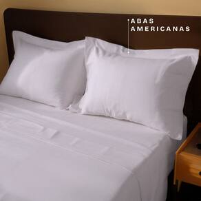 Durma cercado de conforto e sofisticação com o Jogo de Cama Casal 300 Fios BF Colchões, desenvolvido para quem busca elegância e qualidade em cada detalhe. Produzido em Percal 300 fios 100% algodão, o tecido possui toque suave, alta durabilidade e uma textura delicada que proporciona noites de sono mais agradáveis. Sua trama firme e respirável garante conforto térmico e sensação de frescor em todas as estações. • 1 Sobrelençol: 240 cm x 250 cm • 1 Lençol com elástico: 158 cm x 198 cm x 30 cm • 2 Fronhas: 70 cm x 50 cm