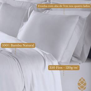 Conhecido como o melhor lençol do mercado em textura, toque e conforto, o Jogo de lençol em fibra de bambu é uma revolução no segmento têxtil. O Jogo de Cama Percal 350 fios em fibra de bambu da Buettner possui fronhas pespontadas com 7cm de Aba e Sobre lençol com dobra feita, conferindo um visual requintado para o seu quarto.