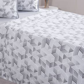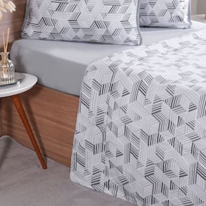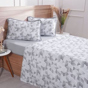 Jogo de Cama Casal 4 Pçs Malha Premium 145g/m² 100% Algodão 138x188x30cm Geometria -