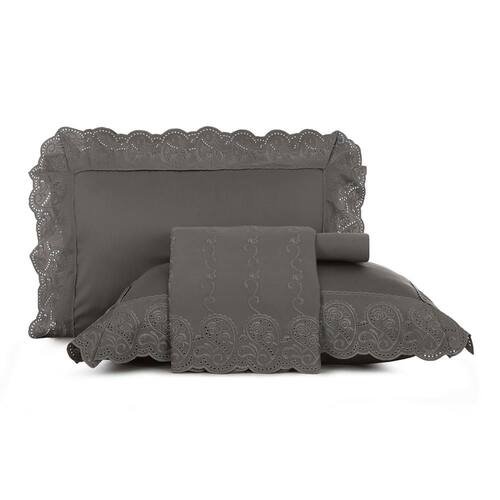 A sutileza do bordado e a elegância do cinza criam uma composição super sofisticada ao Jogo de Cama Bordados Cetim 300 fios Colline.