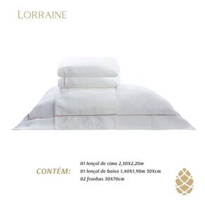 Lençol de cima 2,50 m x 2,20 m Lençol de baixo 1,40 m x 1,90 m x 30 cm Fronha 70 cm x 50 cm + 6 cm