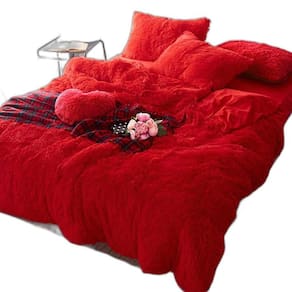 Jogo de cama 6 peças pelúcia Gabarse vermelho casal comum.