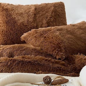 2 capas de travesseiros de 70cm x 50cm sem enchimento - frente pelúcia caramelo e costas em microfibra caramelo toque acetinado.