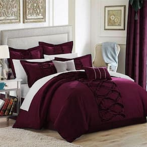 Jogo de cama completo 11 peças Suede Chamois Bordô e percal de algodão 300 fios