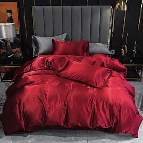 Jogo De Cama Casal Comum Cetim Toque Seda 7 Peças Vermelho