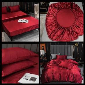 Jogo De Cama Casal Comum Cetim Toque Seda 7 Peças Vermelho