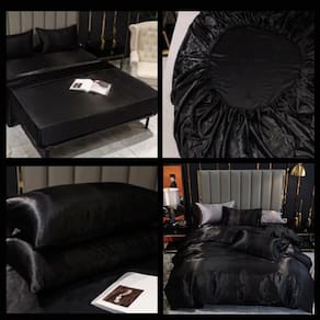 Jogo de cama Casal King completo 7 peças cetim toque de seda - Preto com PrataDisponível para camas: Casal KingAtual. Esse jogo de cama da grife foi desenvolvido para um público que não abre mão de exclusividade, Modernidade e um toque despojado também ao se deitar. Além de lindo, por serem confeccionados em estilo futon europeu, nossos edredons dispensa a necessidade de costurinhas tradicionais, em acabamento totalmente embutido, os jogos da marca deixam qualquer quarto rico, sem a obrigação de alisar e ajeitar o edredom todos os dias ao se levantar. Dobrado, esticado ou apenas jogado sobre a cama, esse jogo garante um ar irreverente e moderno para o seu decor. Perfeito para dormir a vontade em noites de verão. O que vem no Kit: 1 lençol com elástico com elástico para colchões de até 40cm de altura - Preto1 edredom dupla face com enchimento 280x280cm - Preto 2 capas de travesseiros de 70cm x 50cm - Preto - Capa de travesseiro sem enchimento. 2 capas de travesseiros de 70cm x 50cm - Prata - Capa de travesseiro sem enchimento. 1 almofada exclusiva da marca de 45cm x 45cm - preto com estampa em branco - Frase: Never give up your dreams Nunca desista dos seus sonhos Atenção: Nossos jogos não acompanham lençol de cima cobre leito Composto por:Edredom, lençol, almofada e capas de travesseiros em microfibra mista de poliéster com elastano toque macio e confortável Não trabalhamos com algodão Almofada já com enchimento em fibra de algodão e tnt antialérgicoAs capas de travesseiros não acompanham refil de enchimento.Mais detalhes:Capa de almofadas com zíper invisível para um acabamento delicado e de fácil lavagemOs jogos a venda é composto por todas as peças da foto imagem.Atenção: o produto pode sofrer pequena alteração de tonalidade de cor dependendo da configuração do seu computador, tablet ou celular. Imagens meramente ilustrativas. Marca: Casa Da Fama