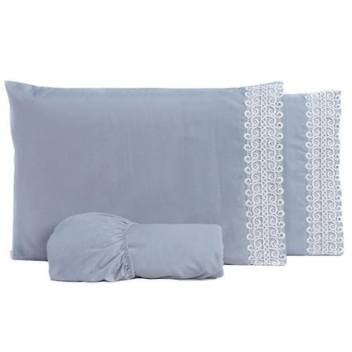 Confira a nova coleção Florença, com lindas cores que foram desenvolvidas especialmente para deixar o seu quarto ainda mais elegante. Esses lençóis são fabricados em tecido Percal de 200 fios composto com 80% Algodão de ótima qualidade!! Complete a decoração do seu Kit Florença com esse lindo jogo de lençol, acompanhado das 2 fronhas com acabamento em Guipir em toda a volta! Com a aplicação dessa renda Guipir se tem mais sofisticação e elegância, bonito e delicado para investir em uma decoração, totalmente em alta e é uma peça presente nas roupas e objetos decorativos por sua fácil composição e delicadeza, podendo facilmente ser utilizada em diversos ambientes para a decoração da casa, deixando tudo muito mais bonito e com um toque romântico. Perfeito para o conforto e a praticidade do seu dia-a-dia e também para presentear quem você ama! Confira!