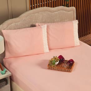 Confira a nova coleção Florença, com lindas cores que foram desenvolvidas especialmente para deixar o seu quarto ainda mais elegante. Esses lençóis são fabricados em tecido Percal de 200 fios composto com 80% Algodão de ótima qualidade!! Complete a decoração do seu Kit Florença com esse lindo jogo de lençol, acompanhado das 2 fronhas com acabamento em Guipir em toda a volta! Com a aplicação dessa renda Guipir se tem mais sofisticação e elegância, bonito e delicado para investir em uma decoração, totalmente em alta e é uma peça presente nas roupas e objetos decorativos por sua fácil composição e delicadeza, podendo facilmente ser utilizada em diversos ambientes para a decoração da casa, deixando tudo muito mais bonito e com um toque romântico. Perfeito para o conforto e a praticidade do seu dia-a-dia e também para presentear quem você ama! Confira!