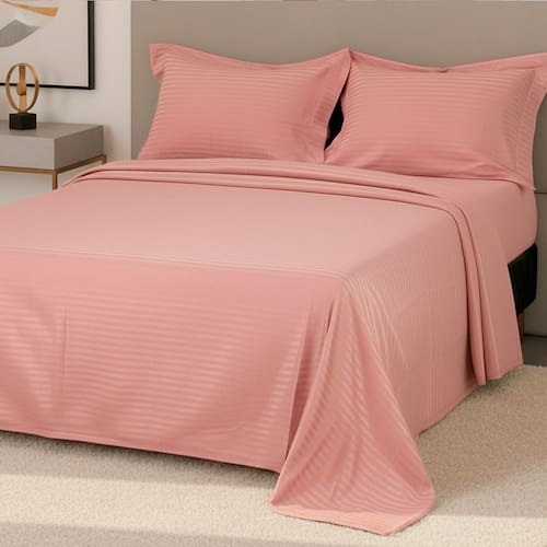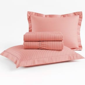 Contém: • 1 Sobrelençol: 220 x 240 cm • 1 Lençol com elástico: 138 x 188 x 30 cm • 2 Fronhas: 50 x 70 cm Cuidados: Lave com delicadeza e evite altas temperaturas para manter o toque e a durabilidade do seu lençol 100% algodão percal 300 fios.