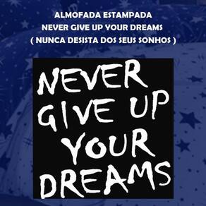 1 almofada de 45cm x 45cm com enchimento - almofada em preto com estampa em branco - never give up your dreams nunca desista dos seus sonhos