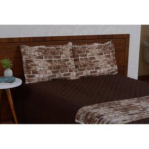 Jogo de cama com colcha fronhas e xale 4 peças marrom queen Cobre leito valencia casal queen 4 peçasContém:01 cobre leito 2,50m x 2,20m.02 portas travesseiro 0,70cm x 0,50cm.01 xale 1,70 x 0,50 Composição do cobre leito:Tecido 100% poliéster.Forro tnt 40 gramas. Composição do xale:51% algodão/49% poliéster Cobre leito todo matelado.Ótimo custo e ótima qualidade de mão de obra.