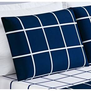 O jogo de cama Austin é super moderno e prático. Confeccionado em tecido micropercal 200 fios em estampa grid, traz suavidade e conforto ao seu ambiente.