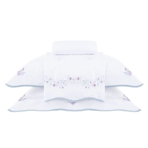 Contém: 1 lençol plano, 1 lençol com elástico e 2 fronhas