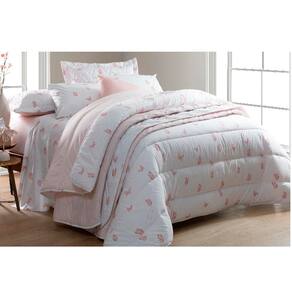 Jogo de Cama Duplo Casal 4 Peças Percal 180 Fios Borboleta Sonhare Prata - Branco