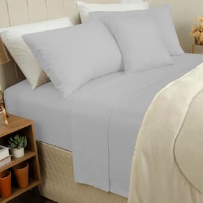 Jogo de Cama Duplo Casal 4 Peças Percal 180 Fios Cinza (Prata) Sonhare Prata - Sultan