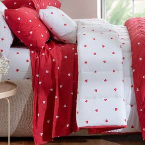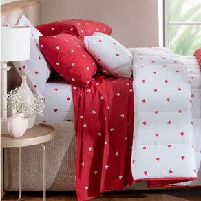 Jogo de Cama Duplo Casal 4 Peças Percal 180 Fios Coração Malbec Sonhare Prata - Branco
