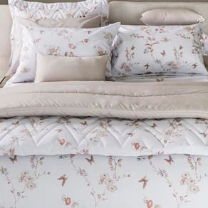 Cor: Lençol de Baixo na cor Bege com pontos Branco e o Lençol de Cima e fronhas na cor branco com detalhes de flores e borboletas.