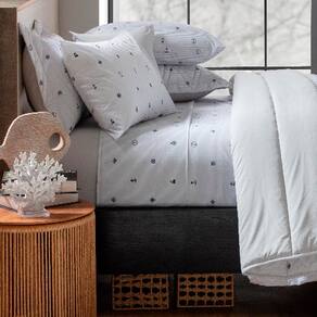 Jogo de Cama Duplo Casal 4 Peças Percal 180 Fios Náutico Sonhare Prata - Branco
