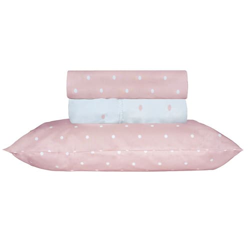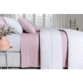 Jogo de Cama Duplo Casal 4 Peças Percal 180 Fios Pettit Rosa Sonhare Prata - Sultan O Jogo de Cama confeccionado em algodão e poliéster e com sua composição em 180 fios, traz conforto, aconchego e sensação de maciez proporcionando noites de sono mais tranquilas e confortáveis. Sua cor deixa seu ambiente mais alegre. Beleza e mais tempo de conservação do produto com caimento perfeito. Sua confecção usa tecnologia Americana "No Iron". Essa tecnologia torna o tecido mais resistentes a rugas, não precisando passar. Conteúdo da embalagem: 1 Lençol de cima 250x220cm (CxL) 1 Lençol de baixo com elástico para colchão de 188x138cm até 30cm de altura (CxLxA) 2 Fronhas 70x50cm (CxL) Composição: Tecido: 65% Algodão 35% Poliéster Percal 180 fios Maciez do algodão Fácil de passar Tecnologia Americana Cor: Lençol de Baixo na cor Branco com pontos Rosa e o Lençol de Cima e as Fronhas na cor Rosa e pontos Branco Fabricante: Sultan Linha: Sonhare Prata Modelo: Petit Rosa Instruções de lavagem: Lavar à temperatura máxima de 30°C Não usar alvejante à base de cloro Secagem em tambor rotativo, temperatura mínima Passar à temperatura máxima de 110°C Não limpar à seco Limpeza a úmido profissional em processo normal - Não acompanha demais itens de decoração da foto. Devido à diferença de luz e tela do seu aparelho, a cor do item pode ser ligeiramente diferente das imagens. Santo Magazine