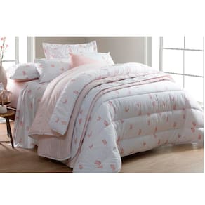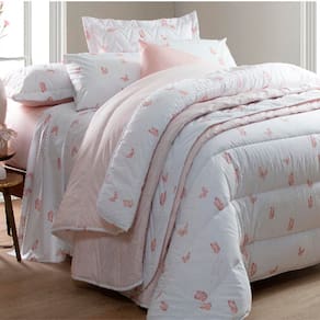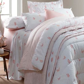 Cor: Lençol de Baixo na cor Rosa com pontos Branco e o Lençol de Cima na cor Branco com Borboletas Rosa