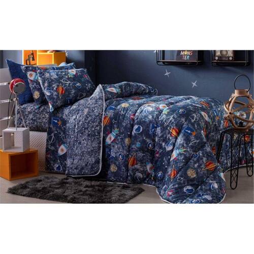 Composição: 50% algodão e 50 % poliéster e 140 fios Peso: 0,850 gr Serve cama box e não acompanha edredom Produto de qualidade