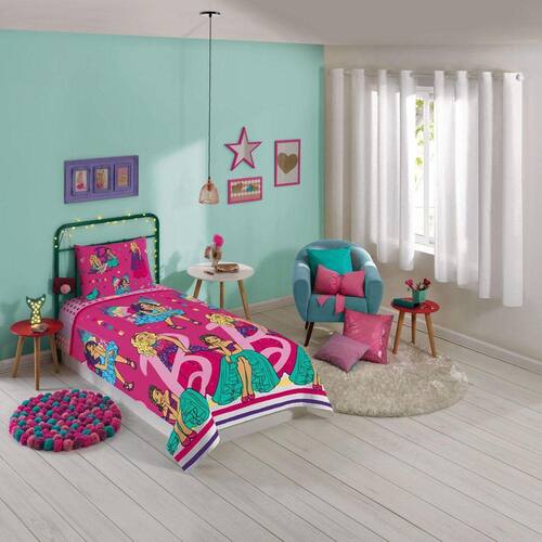 Jogo De Cama Infantil Microfibra Barbie Lepper 3 Peças O jogo de cama da coleção Barbie estampa toda a beleza de um mundo encantado, com sereias, fadas e muita magia. Com um tecido de microfibra cheio de maciez, que não amassa, tem um ótimo caimento na cama e uma boa durabilidade, ele traz o jeito Lepper de transmitir o máximo de conforto e aconchego para as noites dos pequenos, proporcionando sonhos muito mais coloridos, mais leves, mais Lepper Descrição Produto: Composição: 100% PoliesterContém: 3 peças 1 Sobrelençol 1,40m x 2,20m 1 Lençol Elástico 88cm x 1,88cm x 20cm e 1 Fronha 50cm x 70cm Estampa: BarbieCor: RosaGramatura: 065g/mMarca: Lepper
