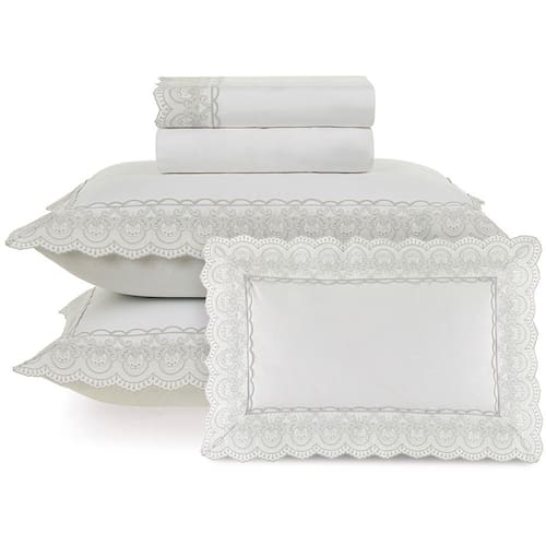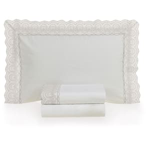 Jogo de Cama Karsten Alice 200 Fios 5 Peças Queen Branco e Prata