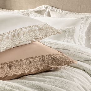 -Fronhas tintas com aplicação de tira bordada nos 3 lados