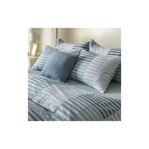 O Jogo de Cama Karsten Julian 160 Fios é a escolha ideal para quem valoriza conforto e estilo. Com um sobre lençol de estampa geométrica em tons de cinza e azulados, traz um toque moderno ao ambiente. O lençol com elástico é neutro e assegura um ajuste perfeito ao colchão, mantendo a cama sempre arrumada e confortável. As fronhas sem abas complementam o conjunto com um design clean e moderno. Confeccionado 100% em algodão com 160 fios, o jogo de cama Julian oferece uma textura suave e agradável ao toque, garantindo noites de sono tranquilas. A alta qualidade do algodão proporciona durabilidade e facilidade de manutenção, tornando este conjunto prático e versátil para o dia a dia. - Contém: Sobre lençol Lençol elástico Fronha - Dimensões: Solteiro: 1 Sobre lençol 180cm x 240cm 1 Lençol de elástico 100cm x 200cm x 30cm 1 Fronha 50cm x 70cm Casal: 1 Sobre lençol 220cm x 240cm 1 Lençol de elástico 138cm x 188cm x 35cm 2 Fronhas 50cm x 70cm Queen: 1 Sobre lençol 240cm x 240cm 1 Lençol de elástico 158cm x 198cm x 30cm 2 Fronhas 50cm x 70cm King: 1 Sobre lençol 290cm x 240cm 1 Lençol de elástico 193cm x 203cm x 35cm 2 Fronhas 50cm x 70cm - Composição: 100% algodão, 160 fios - Fabricante: Karsten - Instruções de Lavagem: Lavação a 60 C; Proibido alvejar; Secar em tambor com temperatura máxima de 60 C; Ferro de passar com temperatura máxima de 150 C; Proibido lavar a seco