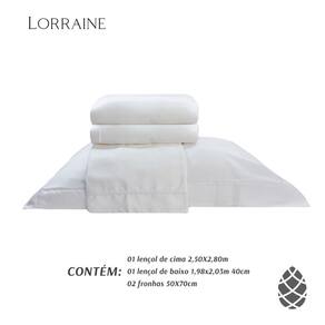 Lençol de cima 2,80 m x 2,50 m Lençol de baixo 1,98 m x 2,03 m x 40 cm Fronha 70 cm x 50 cm + 6 cm