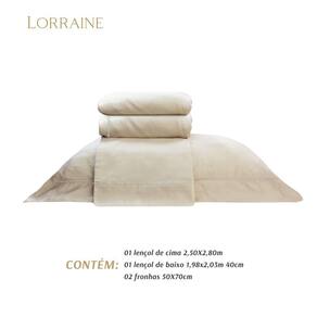 Lençol de cima 2,80 m x 2,50 m Lençol de baixo 1,98 m x 2,03 m x 40 cm Fronha 70 cm x 50 cm + 6 cm