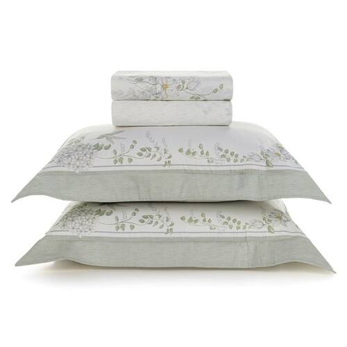 Jogo de Cama King 300 Fios Karsten O jogo de cama Laura é um convite à calmaria. Com desenho floral feito à mão e presença do beija-flor na estampa, transmite leveza e serenidade. Os elementos naturais foram retratados com riqueza de detalhes e delicadeza nas formas. O lençol com elástico tem a mesma padronagem das abas das fronhas. Confeccionado em algodão 300 fios, une conforto ao toque e beleza visual. Ideal para quem deseja um quarto com sensibilidade artística e conexão com a natureza em cada detalhe do enxoval. Contém:1 lençol de cima. Tamanho: 2,90m x 2,60m1 lençol de baixo com elástico. Tamanho: 1,93m x 2,03m x 40cm2 fronhas. Tamanho: 50cm x 70cm com 3 abas de 7cm Material: 300 Fios, 100% Algodão EgípcioEstampa: LauraMarca: Karsten