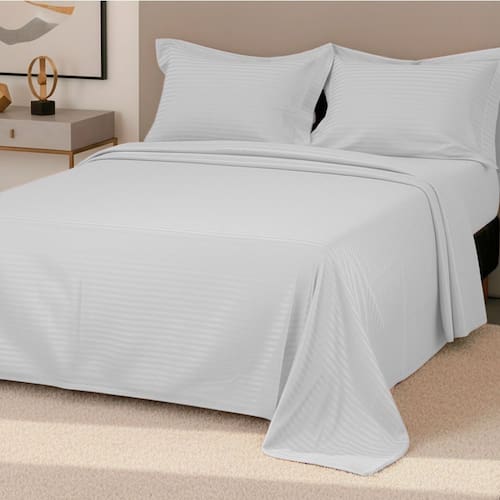 Contém: • 1 Sobrelençol: 260 x 280 cm • 1 Lençol com elástico: 193 x 203 x 30 cm • 2 Fronhas: 50 x 70 cm Cuidados: Lave com delicadeza e evite altas temperaturas para manter o toque e a durabilidade do seu lençol 100% algodão percal 300 fios.