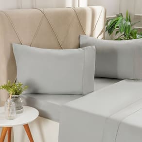 Lençol com Elástico 193x203x40cm: O lençol com elástico é ideal para garantir que o seu colchão de cama King fique perfeitamente ajustado, sem deslocamentos durante a noite. A sua medida de 193x203x40cm acomoda colchões de forma segura, proporcionando um encaixe perfeito. Feito com materiais de alta qualidade, ele oferece uma sensação de frescor e conforto para um sono profundo e revigorante.