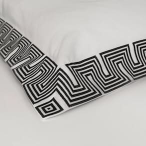 A cor branca do jogo de cama é versátil e combina com qualquer decoração. O bordado na cor preta adiciona um toque de sofisticação ao conjunto, tornando-o ainda mais especial.