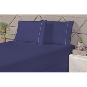 Acompanha: 01 Lençol de baixo com elástico em toda a volta 1,98m x 1,58m x 40cm alt. 02 Fronhas 70cm x 50cm