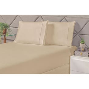 Acompanha: 01 Lençol de baixo com elástico em toda a volta 1,98m x 1,58m x 40cm alt. 02 Fronhas 70cm x 50cm