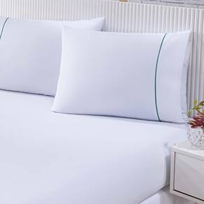 O Jogo de Cama Gran Moratta é confeccionado com tecido Percal 100% Algodão, é Branco e possui um toque de cor em seu detalhe em Vivo. A combinação perfeita para suas noites de sono! Produto composto por: 01 Lençol de Baixo para Colchão 1,93m x 2,03m x 0,40m 02 Fronhas 70cm x 50cm Composição: Percal 150 Fios 100% Algodão Marca: Enxovais Davy | Estampa: Não se Aplica | Medidas: 01 Lençol de Baixo para Colchão 1,93m x 2,03m x 0,40m02 Fronhas 70cm x 50cm | Número de Peças: 03 Peças | Material: Agodão | Cor Predominante: Branco E Verde | Cama Indicada: King